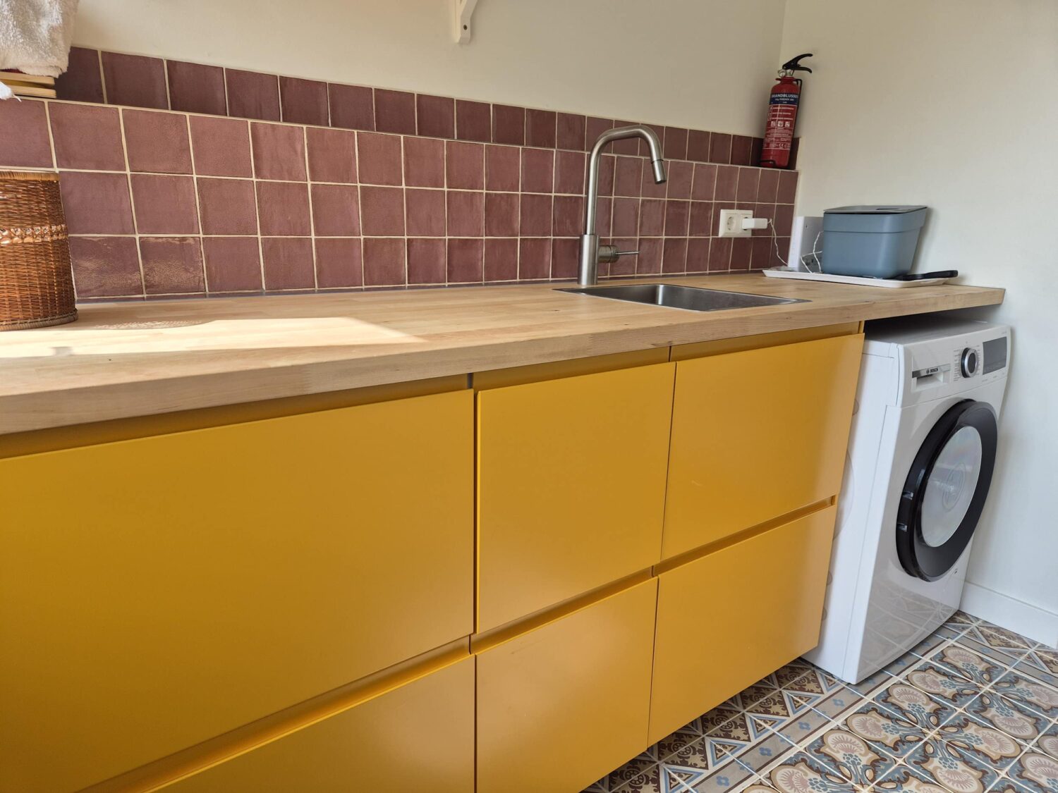 Deze IKEA Voxtorp fronten zijn professioneel gespoten in de kleur Turmeric met een zijdeglans afwerking. Veel mensen oriënteren zicht bij bouwmarkten zoals Gamma op kleurideeën voor hun keuken of wasruimte, maar dit project laat zien hoe een uitgesproken kleur professioneel kan worden toegepast op IKEA fronten. Een inspirerend voorbeeld van hoe kleur een ruimte volledig karakter en kwaliteit kan geven.